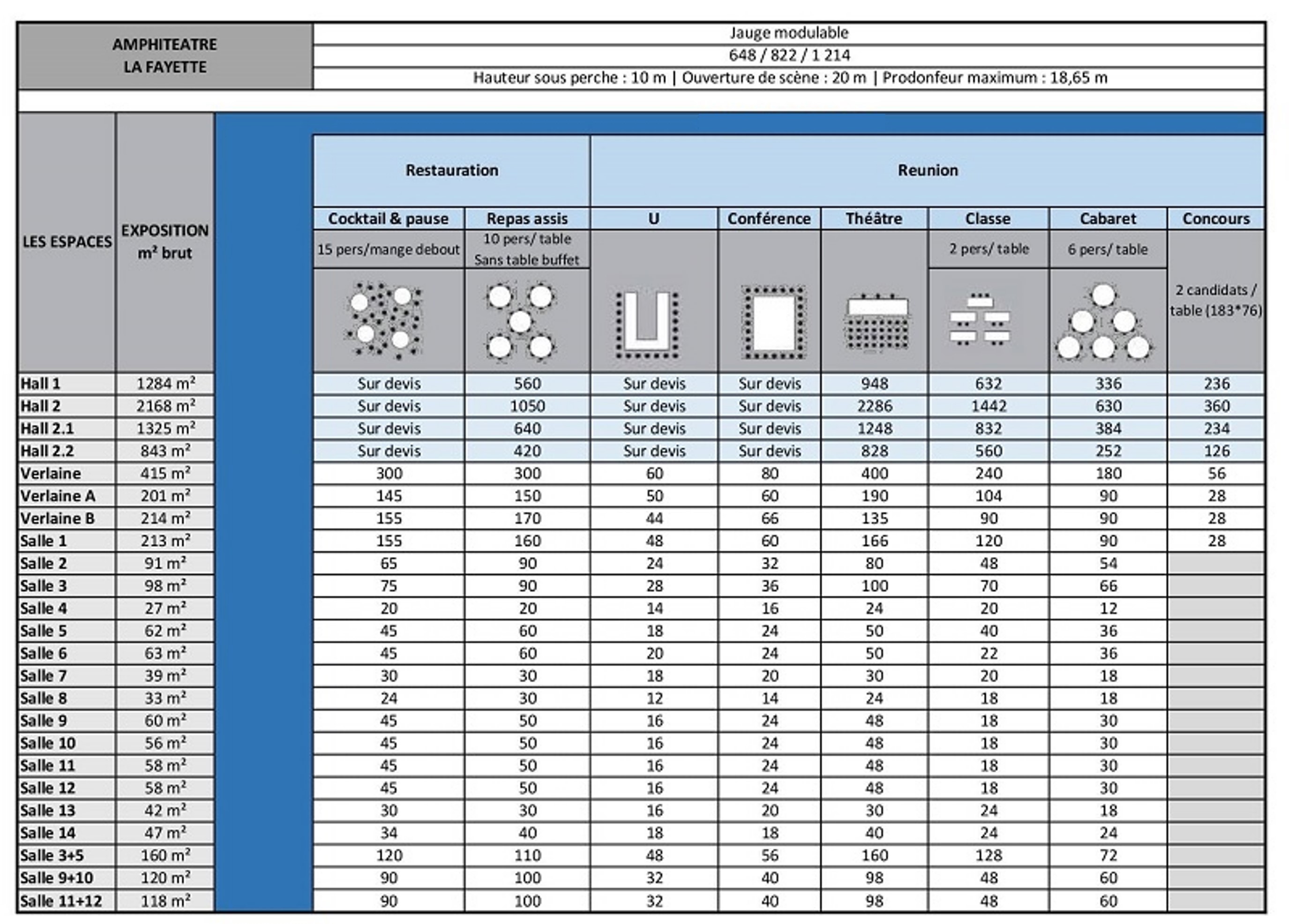 Reception capacities of the different spaces of the Center Reception Capacities of The Different Spaces of The Center