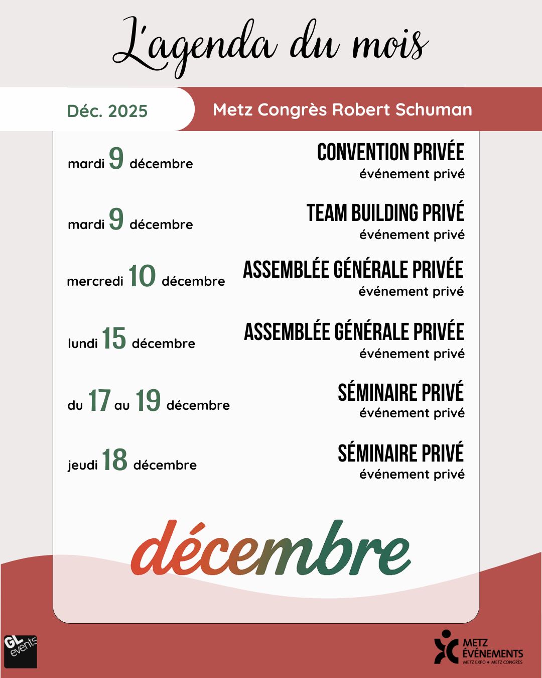 Nos événements du mois de décembre à Metz Congrès Robert Schuman