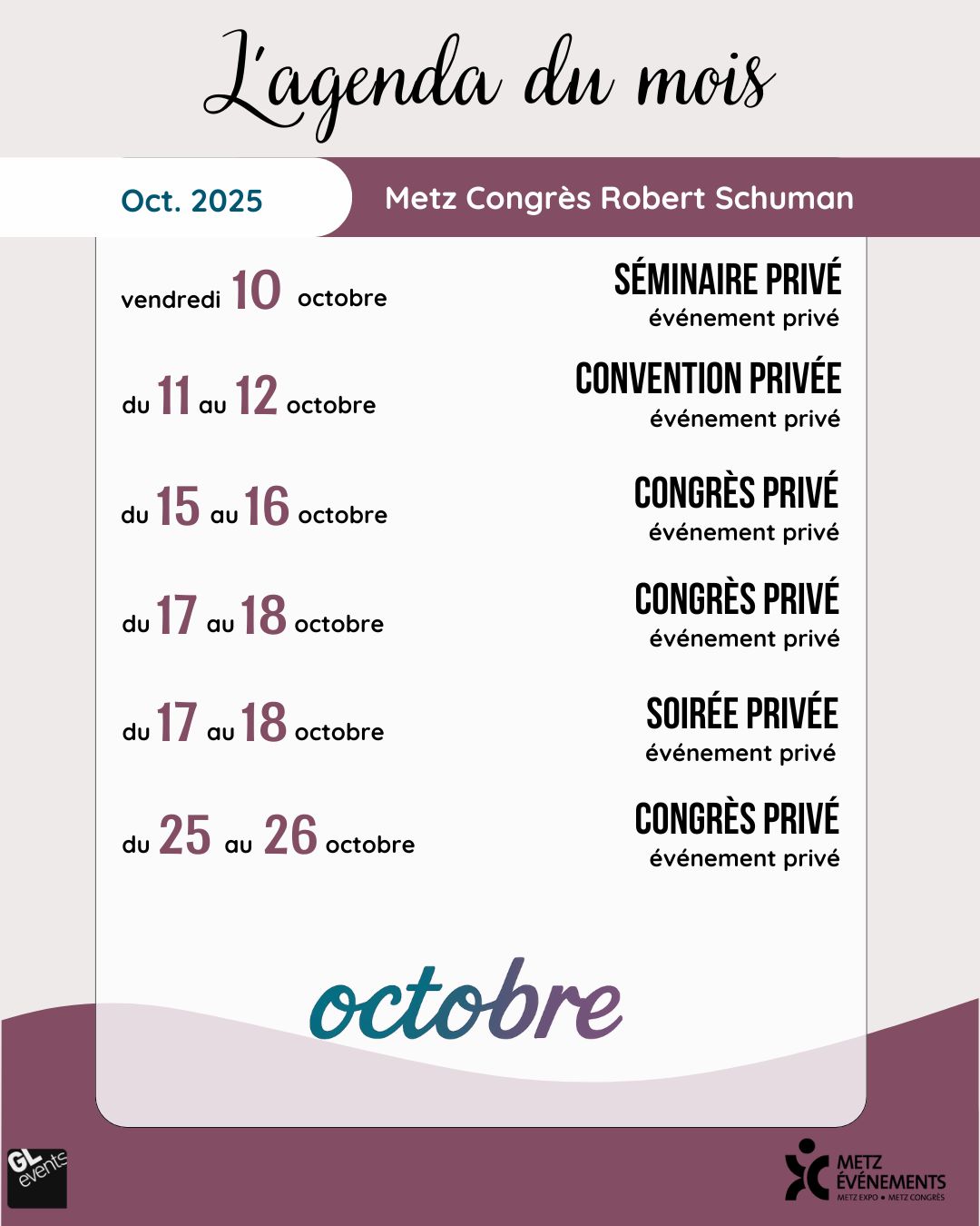 Nos événements du mois d'octobre à Metz Congrès Robert Schuman