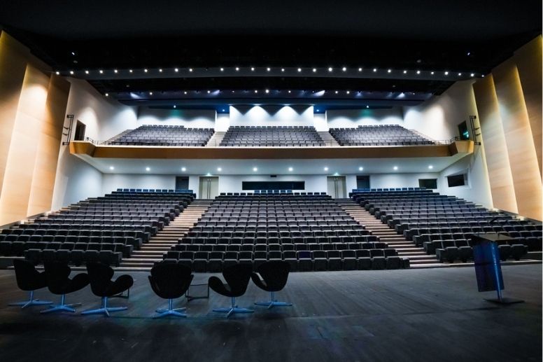 Pièce maîtresse du bâtiment et espace phare pour les plénières de votre congrès, l'auditorium est modulable en 650, 800 ou 1200 places. Sa scène est aménageable selon vos souhaits.